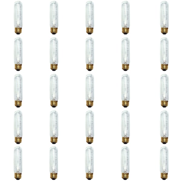 Bulbrite helps you see, do, engage and experience every moment as it's meant to be. Bulbrite is here to inspire you to Turn Life On. Included in this purchase are twenty-five individual T10 Tubular Incandescent light bulbs with a standard E26 base. Each bulb is 40W. This bulb is 130 volts and have a kelvin rating of 2700K.
