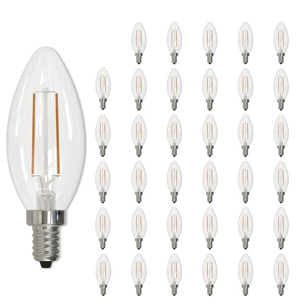 This 36-pack of 4 watt dimmable B11 LED bulbs will keep your home's chandelier in perfect working order and allows you to cast a perfect glow over your home with the power of a long-lasting dimmable LED technology bulb that works in every type of dimmer, in a 2700-Kelvin white light that offers a warm hue for an inviting atmosphere.