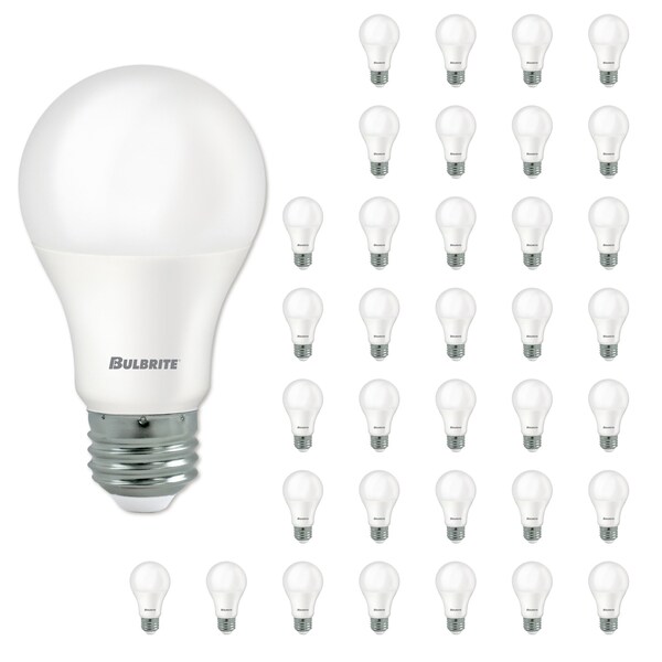 Cast the perfect soft, white light throughout any room of your home with this 36-pack of 9 watt pear-shaped glass A19 LED bulbs, each long lasting and compatible with your dimmer technology and fixtures, with a clear filament, frost glass finish, and an E26 standard screw base.