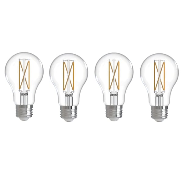 LED Filament, PK4, 7.6 W Dimmable A19 Light Bulb with Clear Finish and Medium Screw E26 Base, 2700K