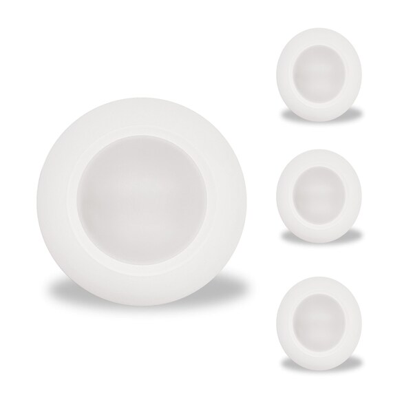 This 4-pack of 14 watt 7in LED 5CCT Selectable Disc Lights features a versatile design in a white aluminum trim, suitable for damp locations and that fit standard 3.5in and 4in J-Boxes, allowing for an easy and quick installation for both remodels and new construction and allowing users and installers to choose the tone of white light they desire before installation.