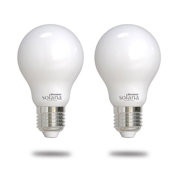 The Bulbrite Solana 2-Pack includes two 40 Watt Equivalent A19 lightbulbs. Each Smart bulb is easily hooked up to your home WIFI and controlled from the app or your existing hub. These bulbs are 90CRI LED Light Bulbs, with a milky finish on the globe. The effect is a bright, in home light for use in every day tasks.
