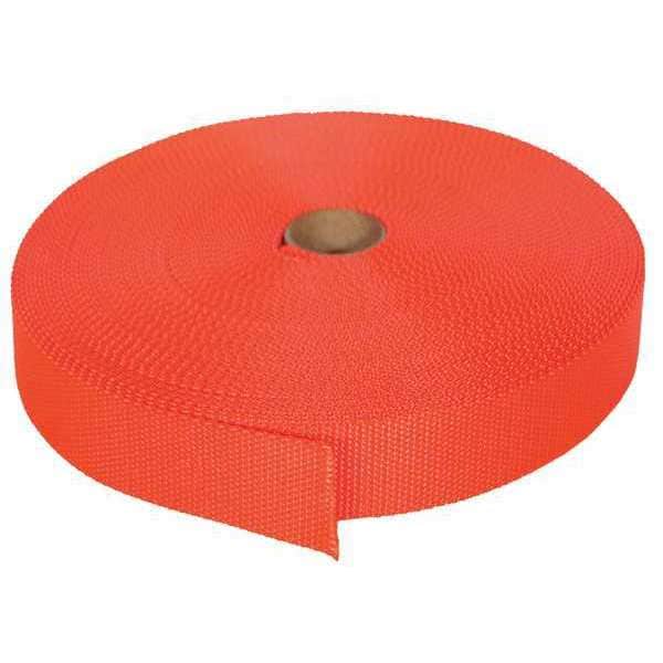 Webbing, Color Orange, Overall Length 102 ft, Overall Thickness 1/16 in, Overall Width 1 in, Tensile Strength 3,800 lb/in, Working Load Limit 1,250 lb, Material Nylon, Product Type Webbing