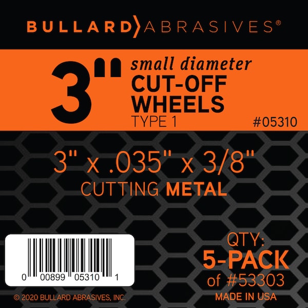 Bullard 53303 Lightning Performance, TA60T, Small Diameter Cut-Off Wheels, 3 x .035 x 3/8, Grit 60, Multi-Pack of 5