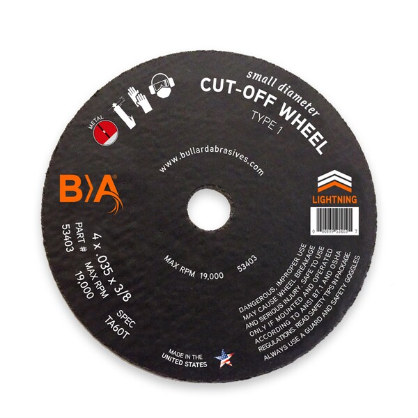 Bullard 53403 Lightning Performance, TA60T, Small Diameter Cut-Off Wheel, 4 x .035 x 3/8