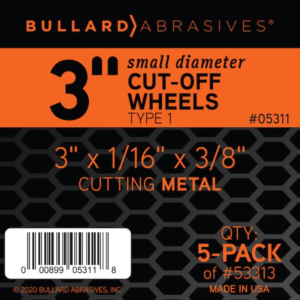 Bullard 53313 Lightning Performance, TA46T, Small Diameter Cut-Off Wheels, 3 x 1/16 x 3/8, Multi-Pack of 5