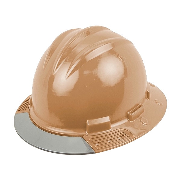 Full Brim Hard Hat, ANSI Classification Type 1, Class E, Head Protection Style Full Brim, Head Protection Suspension Type Ratchet (4-Point), Head Protection Color Tan, Head Protection Graphics No Graphics, Fits Hat Size 6 1/2 to 8, Head Protection Material Polyethylene, Accessory Mounting Options Side-Slots, Head Protection Venting No