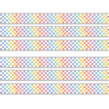 Cool for School Checkers Straight Border Trim, 35 Feet Per Pack, 6PK