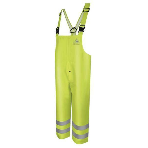 ANSI Class E, ATPV Rating 24 cal/sq cm, Ankle Type Take-Up Tabs, Arc Flash PPE Category 2, Color Yellow/Green, Fabric Weight 10 oz, Features 2 in Reflective Striping, Elasticized Shoulder Straps with Non-Conductive Adjustable Hardware, Non-Conductive Durable Hardware, Take-Up Tabs at Ankles, High-Visibility Yes, Includes Belt Loops No, Includes Lining Yes, Inseam 28 3/4 in, Arc Flash Rain Bib Overall, Lining Material PVC, Material Polyurethane, Maximum Chest Size 36 in, Maximum Waist Size 36 in