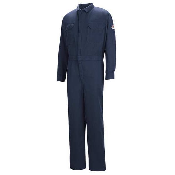 ATPV Rating 11 cal/sq cm, Arc Flash PPE Category 2, Closure Type Zipper, Collar Style Lay-Flat, Color Navy, Fabric Weight 7 oz, Features Concealed Nomex(R) Taped Brass Break-Away, Deep Pleated Action Back, Elastic Waist Inserts, Side Vent Openings with Snap Closure, Two-Way, Gender Men's, Inseam 32 in, Coverall, Material Trade Name CoolTouch, Maximum Chest Size 43 in, Maximum Waist Size 38 3/4 in, Minimum Chest Size 41 1/2 in, Number of Outside Pockets 8, Size L, Sleeve Length 34 1/2 in