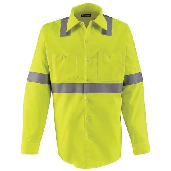 ANSI Class 2, ATPV Rating 9 cal/sq cm, Arc Flash PPE Category 2, Collar Style Lay-Flat, Color Lime, Fabric Weight 7 oz, Features 360 Degrees Visibility with Front and Back 2 in Flame Resistant Silver Reflective Striping, Lined Cuffs with Button Closure, Sewn-in Pencil Stall in Left Chest Pocket, Closure Type Buttons, Gender Men's, High-Visibility Yes, Flame-Resistant Collared Shirt, Material Trade Name CoolTouch 2, Maximum Chest Size 44 in, Maximum Waist Size 44 in, Minimum Chest Size 40 1/2 in