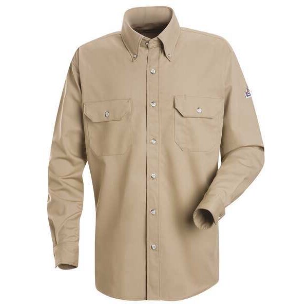 ATPV Rating 9 cal/sq cm, Arc Flash PPE Category 2, Collar Style Lay-Flat, Color Tan, Fabric Weight 7 oz, Features Gusset Side Seam, Ladies Styles have Darts for True Ladies Fit, Tailored Sleeve Placket and Straight Back Yoke, Top Stitched Cuffs W/ Adjustable Button Closure and Placket Front W/ Button Closure, Closure Type Buttons, Gender Men's, High-Visibility No, Flame-Resistant Collared Shirt, Material Trade Name CoolTouch 2, Maximum Chest Size 38 in, Maximum Waist Size 35 1/2 in