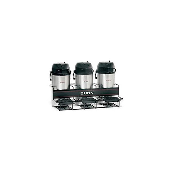 Universal airpot racks univ-3 apr - 35728.0002 racks hold both push-button and lever-action airpots. designed to display 2, 3, 4, 5 or 6 airpots. displays can be combined or taken apart easily for greater flexibility. sturdy, carbon-steel wire construction with vinyl coating resists corrosion and is easy to clean. sponge-lined trays to catch drips and spills.