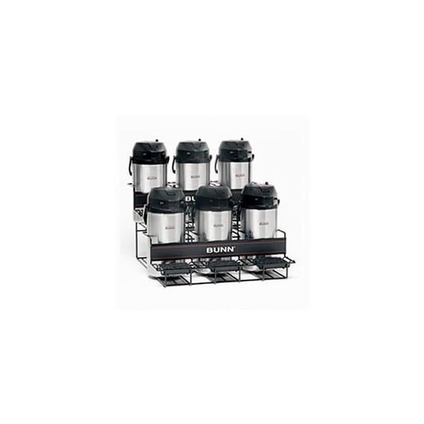 Universal airpot racks univ-6 apr - 35728.0005 universal airpot racks racks hold both push-button and lever-action airpots. designed to display 2, 3, 4, 5 or 6 airpots. displays can be combined or taken apart easily for greater flexibility. sturdy, carbon-steel wire construction with vinyl coating resists corrosion and is easy to clean. sponge-lined trays to catch drips and spills.