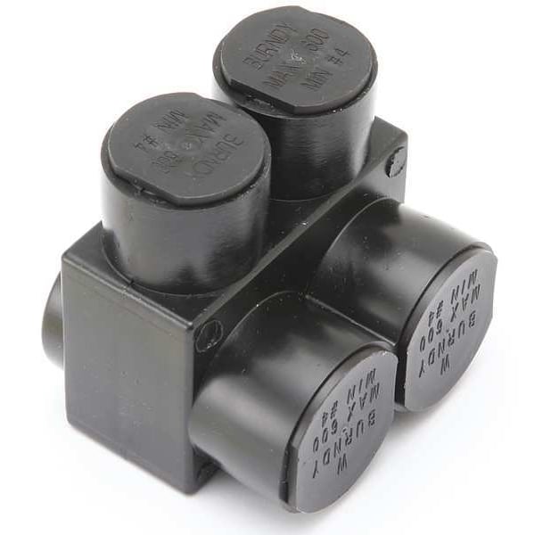 Multitap Connector, Body Material Aluminum, Color Black, Finish Unplated, For Conductor Material Aluminum, Copper, For Stranded Copper Wire Size - Minimum 4 AWG, For Stranded Copper Wire Size - Maximum 600 kcmil, Head Style Hex, Hex Size 3/8 in, Insulation Material Plastisol, Maximum Operating Temperature 194 Degrees F, Maximum Voltage 600 V, Mounting Hole Size Not Applicable, Number of Ports 2, UL 94 Flammability Rating V-0, RoHS Compliant Yes, Standards UL Listed