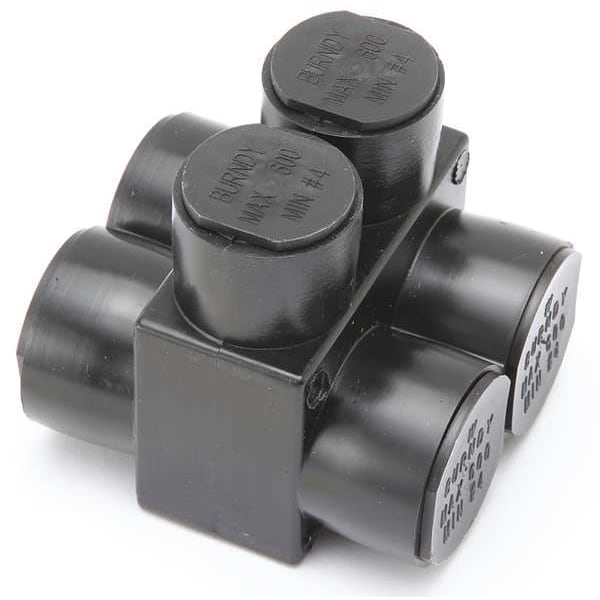 Multitap Connector, Body Material Aluminum, Color Black, Finish Unplated, For Conductor Material Aluminum, Copper, For Stranded Copper Wire Size - Minimum 4 AWG, For Stranded Copper Wire Size - Maximum 600 kcmil, Head Style Hex, Hex Size 3/8 in, Insulation Material Plastisol, Maximum Operating Temperature 194 Degrees F, Maximum Voltage 600 V, Mounting Hole Size Not Applicable, Number of Ports 2, UL 94 Flammability Rating V-0, RoHS Compliant Yes, Standards UL Listed