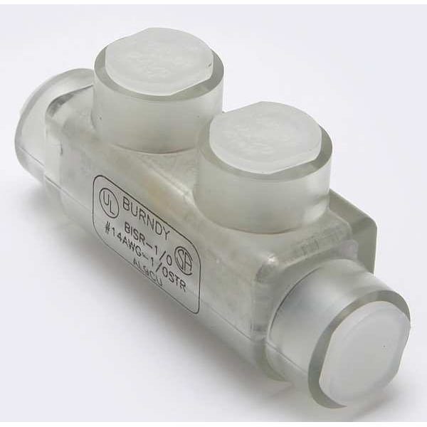 Multitap Connector, Body Material Aluminum, Color Clear, Finish Unplated, For Conductor Material Aluminum, Copper, For Stranded Copper Wire Size - Minimum 14 AWG, For Stranded Copper Wire Size - Maximum 1/0 AWG, Head Style Hex, Hex Size 3/16 in, Insulation Material Plastisol, Maximum Operating Temperature 194 Degrees F, Maximum Voltage 600 V, Mounting Hole Size Not Applicable, Number of Ports 2, UL 94 Flammability Rating V-0, RoHS Compliant Yes