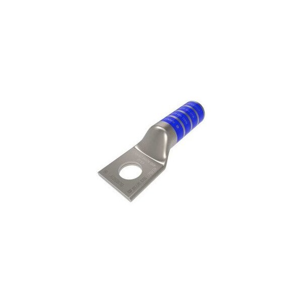 400 KCMIL Stranded Copper Conductor, 600 V to 35 kV, 5/8in Stud, Blue, Electro Tin Plated Copper, 1-Hole, Long, Chamfered, Standard, Straight, Non-Insulated, Compression Cable Lug