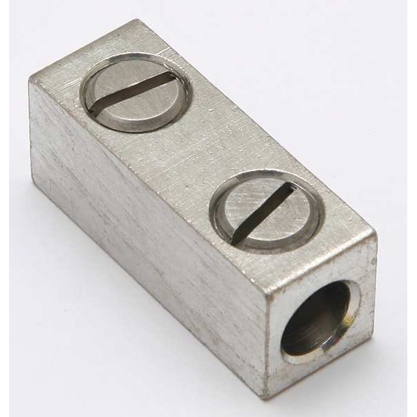 Mechanical Connector, For Conductor Material Aluminum, Copper, For Stranded Copper Wire Size - Minimum 14 AWG, For Stranded Copper Wire Size - Maximum 2 AWG, For Stud Size 3/8 in, Head Style Slotted, Number of Holes Not Applicable, Hole Diameter Not Applicable, Hole Spacing Not Applicable, Body Material Aluminum, Maximum Temperature 194 Degrees F, Maximum Voltage 600 V, Number of Conductors 2, Number of Terminations 2, Tongue Width Not Applicable, Tongue Thickness Not Applicable