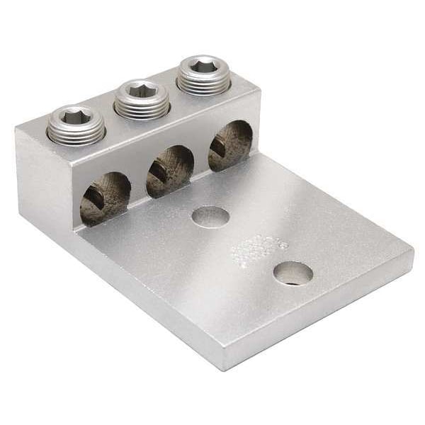 Mechanical Connector, For Conductor Material Aluminum, Copper, For Stranded Copper Wire Size - Minimum 14 AWG, For Stranded Copper Wire Size - Maximum 2/0 AWG, For Stud Size 1/2 in, Head Style Slotted, Number of Holes 2, Hole Diameter 0.56 in, Hole Spacing 1.75 in, Body Material Aluminum, Maximum Operating Temperature 194 Degrees F, Maximum Voltage 600 V, Number of Conductors 3, Number of Terminations 3, Tongue Length 3.06 in, Tongue Width 1.95 in, Tongue Thickness 0.19 in