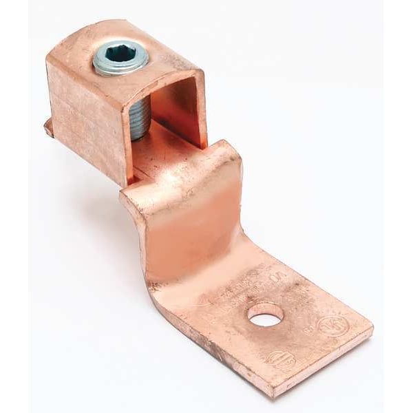Mechanical Connector, For Conductor Material Copper, For Stranded Copper Wire Size - Minimum 14 AWG, For Stranded Copper Wire Size - Maximum 6 AWG, For Stud Size #10, Head Style Slotted, Number of Holes 1, Hole Diameter 0.2 in, Hole Spacing Not Applicable, Body Material Copper, Maximum Temperature 194 Degrees F, Maximum Voltage 600 V, Number of Conductors 1, Number of Terminations 1, Tongue Length Not Applicable, Tongue Width 0.38 in, Tongue Thickness 0.07 in, Connector Type Terminal