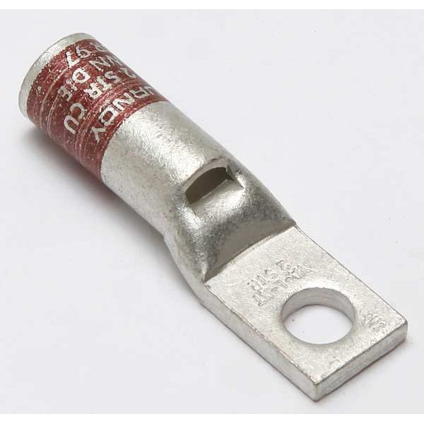 Compression Lug, Barrel Size Standard, Color Code Brown, Die Code 10, Tongue Angle Straight, Tongue Width 0.5 in, For Conductor Material Aluminum, Copper, For Stud Size 1/4 in, For Stranded Copper Wire Size - Minimum 2 AWG, For Stranded Copper Wire Size - Maximum 2 AWG, Inspection Hole Yes, Hole Center to Center Not Applicable, Material Copper, Maximum Temperature 194 Degrees F, Maximum Voltage 35 kV, Termination Style Crimp, Standards CSA Certified, UL 486A-486B, UL Listed, Number of Holes 1
