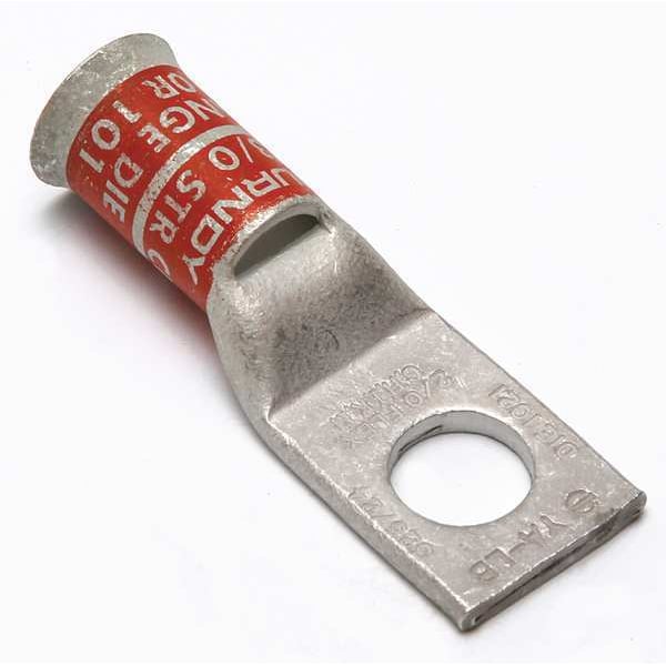 One-Hole Compression Lug, 2/0 AWG Max, 1/2 in Stud, Short Barrel, Copper, Orange