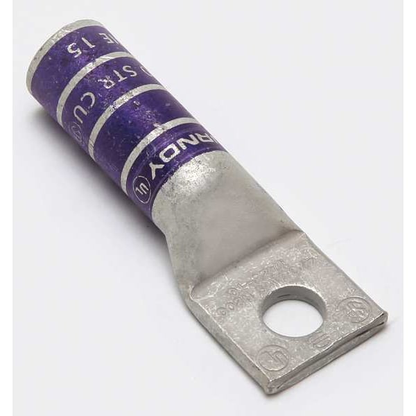 Compression Lug, Barrel Size Long, Color Code Purple, Die Code 15, Tongue Angle Straight, Tongue Width 1.02 in, For Conductor Material Copper, For Stud Size 3/8 in, For Stranded Copper Wire Size - Minimum 4/0 AWG, For Stranded Copper Wire Size - Maximum 4/0 AWG, Inspection Hole No, Hole Center to Center Not Applicable, Material Copper, Maximum Temperature 194 Degrees F, Maximum Voltage 35 kV, Termination Style Crimp, Standards CSA Certified, UL 486A-486B, UL Listed, Number of Holes 1