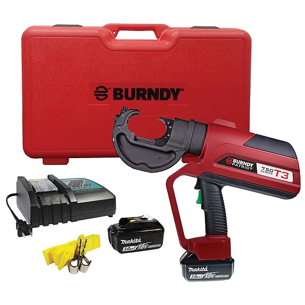 T3 Tech 12T C-Head, Battery Platform Makita 18V LXT, Maximum Copper Lug Crimping Capacity 750 kcmil, Minimum Copper Lug Crimping Capacity 750 kcmil, Maximum Aluminum Lug Crimping Capacity 750 kcmil, Minimum Aluminum Lug Crimping Capacity 750 kcmil, Crimping Force 12 ton, Compatible Die Type U, Head Style C-Head, Number of Dies Included 0, Die Sizes included Not Applicable, Handle Type Pistol Grip, Cordless Tool Kit Contents (2) Batteries, Charger, Crimper, Hard Case, Lanyard