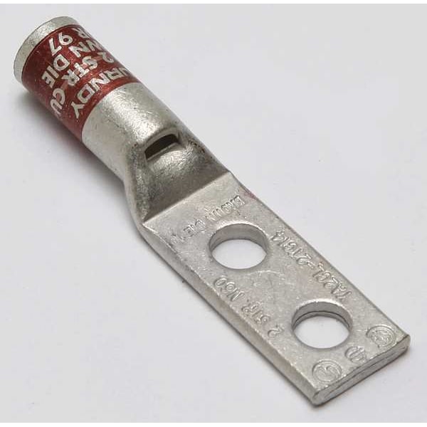 Compression Lug, Barrel Size Standard, Color Code Brown, Die Code 10, Tongue Angle Straight, Tongue Width 0.6 in, For Conductor Material Copper, For Stud Size 1/4 in, For Stranded Copper Wire Size - Minimum 2 AWG, For Stranded Copper Wire Size - Maximum 2 AWG, Inspection Hole Yes, Hole Center to Center 0.625 in, Material Copper, Maximum Operating Temperature 194 Degrees F, Maximum Voltage 35 kV, Termination Style Crimp, Standards CSA Certified, UL 486A-486B, UL Listed, Number of Holes 2
