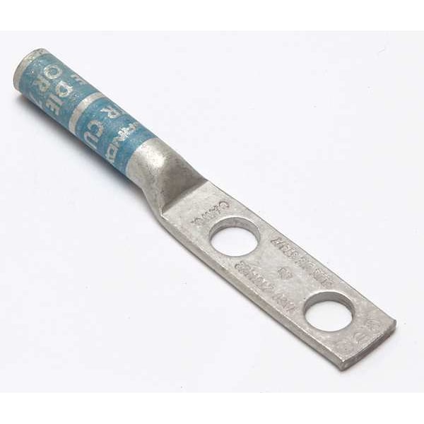 Two-Hole Lug Compression Connector, Barrel Size Long, Color Code Blue, Die Code 374, 7, Tongue Angle Straight, Tongue Width 0.45 in, For Conductor Material Copper, For Stud Size 1/4 in, For Stranded Copper Wire Size - Minimum 6 AWG, For Stranded Copper Wire Size - Maximum 6 AWG, Inspection Hole No, Hole Center to Center 0.75 in, Material Copper, Maximum Operating Temperature 194 Degrees F, Maximum Voltage 35 kV AC, Termination Style Crimp, Standards CSA Certified, UL 486A-486B, UL Listed