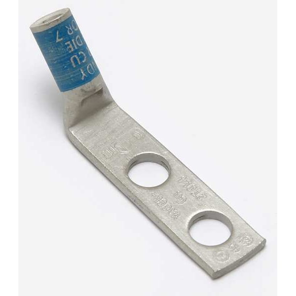 Compression Lug, Barrel Size Standard, Color Code Blue, Die Code 374, 7, Tongue Angle Straight, Tongue Width 0.45 in, For Conductor Material Copper, For Stud Size 1/4 in, For Stranded Copper Wire Size - Minimum 6 AWG, For Stranded Copper Wire Size - Maximum 6 AWG, Inspection Hole Yes, Hole Center to Center 0.625 in, Material Copper, Maximum Operating Temperature 194 Degrees F, Maximum Voltage 35 kV, Termination Style Crimp, Standards CSA Certified, UL 486A-486B, UL Listed, Number of Holes 2