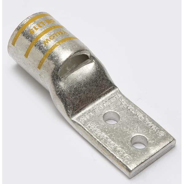 Two-Hole Compression Lug, 750 kcmil Max, 3/8 in Stud, Standard Barrel, Copper, Yellow