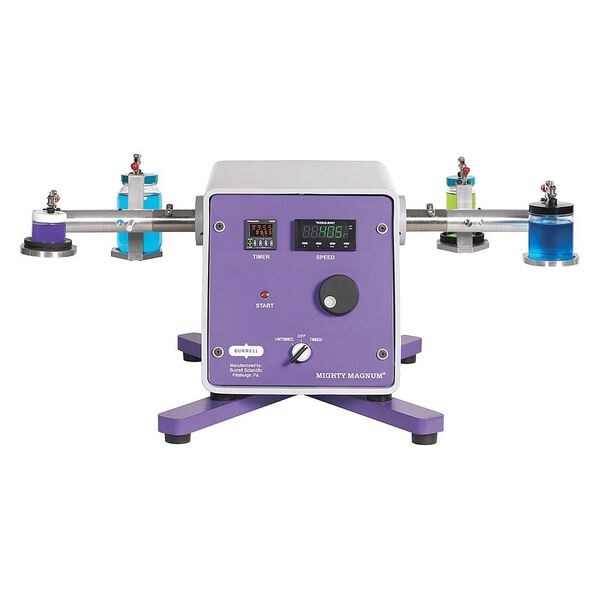 Shaker, Wrist Action, Load Capacity 30 lb, Speed Range 0 to 450 rpm, Capacity - Lab Equipment 4 x 250 mL, Operating Temp. Range Ambient 4 Degrees to 30 Degrees C, Number of Platforms 0, Hazardous Location No, Plug Style - Lab Equipment Standard, Amps 3 A, Hz 50/60, Voltage 115/220, Overall Depth 24 in, Overall Height 20 in, Overall Width 31 in