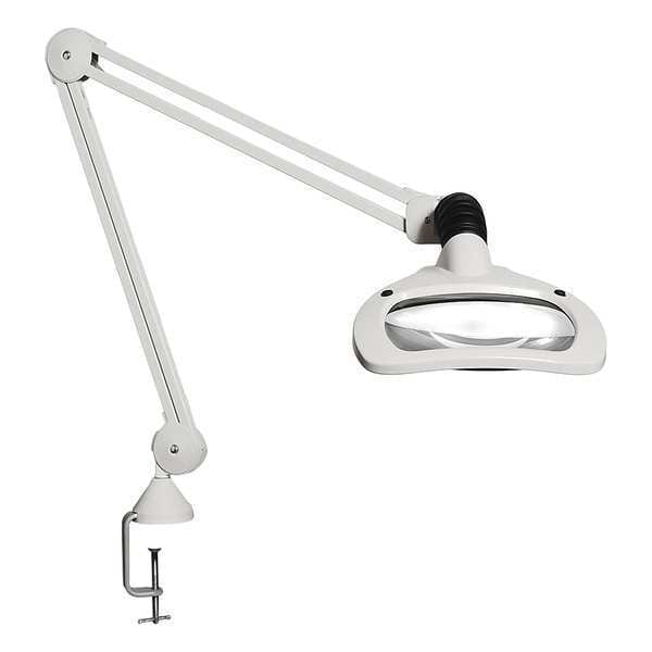 Examination Light, Arm Reach 45 in, Color White, Color Rendering Index 80, Color Temperature 4000K, Lens Material Glass, Lighting Technology LED, Magnification 1.88x, Mount Type Clamp, Operating Voltage 120V AC, Arm Adjustability Horizontal & Vertical Swivel, Beam Angle 70 Degrees , Dimmable Yes, ESD Safe No, Features Internal Spring