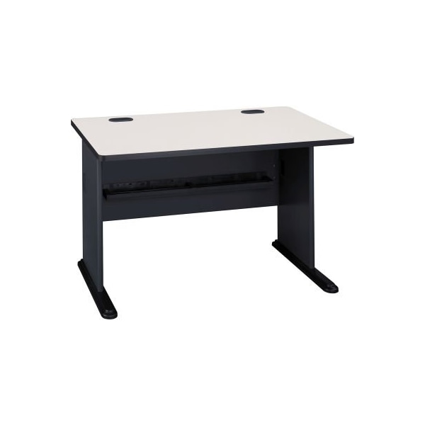 the bush business furniture series a 48w desk provides lasting comfort and durability in a compact package. Perfect for a small office or as part of a larger workspace, the commercial-grade desk features an open c-leg design to maximize legroom. Thick end panels resist damage, while a thermally fused laminate surface fends off scratches and stains for a long-lasting professional appearance. A comprehensive wire management system organizes and secures computer cables to keep them out of your way. Sturdy desk feet include encapsulated steel armature and adjustable levelers for use on all types of flooring. The office desk accepts a coordinating hutch, mobile file cabinets, keyboard tray or pencil drawer all sold separately. Series a completes your multi-person workspace, classroom, home office or anywhere in between with a variety of configuration options. Featuring 7 attractive two-tone finishes and contemporary styling, this commercial office furniture adapts to your surroundings. Customize any environment with a full line of affordable products, all backed by a 10 year warranty. Series a withstands the rigors of a 40-plus hour week and meets ansi/bifma quality test standards. features: thermally fused laminate finish fends off scratches and stains open c-leg design provides loads of legroom so you can work in comfort wire management system includes leg and desktop grommets with a channel on the modesty panel to keep cables under control complete your workspace with a coordinating hutch, mobile file cabinet, keyboard tray or pencil drawer all sold separately series a makes the most of any space with endless configuration options and 7 attractive two-tone finishes to match your style meets ansi/bifma quality test standards for performance and safety american made with u.s. And imported parts commerc