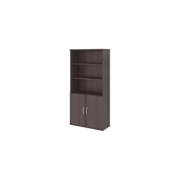 Bush Furniture 5-Shelf Bookcase with Doors - Storm Gray - Studio C Series