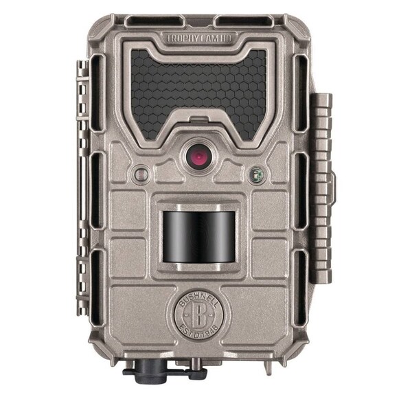 With a 20MP resolution and a quick 02second trigger speed, the brownTrophy Cam HD Aggressor LowGlow Trail CamerafromBushnelloffers the ability to capture highresolution stills or HD video of wildlife and people on your property or hunting grounds It comes with a black and white text LCD viewerAllows you to see patterns and change over time Useful for recording a wide range of subjectsevents, including game, weather, plants and construction site development Detects changes in temperature that occur when subjects move, and captures images in response