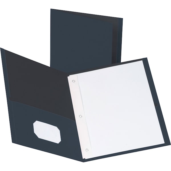 Folders offer three double-prong fasteners to bind up to 100 sheets and convenient pockets inside front and back covers for additional storage. Each pocket holds up to 25 sheets of letter-size, loose paper. Inside front pocket features business card holder. Folders are made of sturdy, leatherette paper stock, and gusset is bound into the folder.