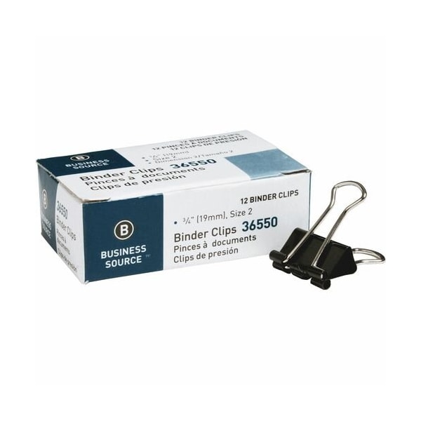 Business Source Binder Clip, Small, 3/4''W, Steel, 3/8'' Capacity, 1 DZ,Black, CLIP,BINDER,SMALL,12PC,BK