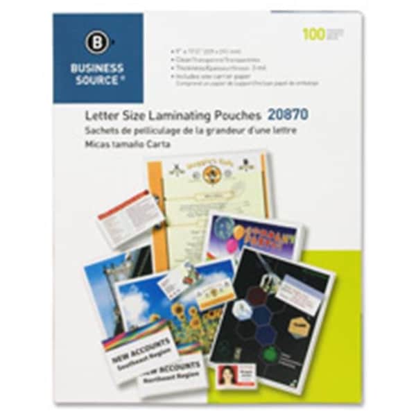 Business Source BSN20870 Laminating Pouch; Ltr; 3Mil; 9 in. x 11.5 in.; 100-BX; Clear