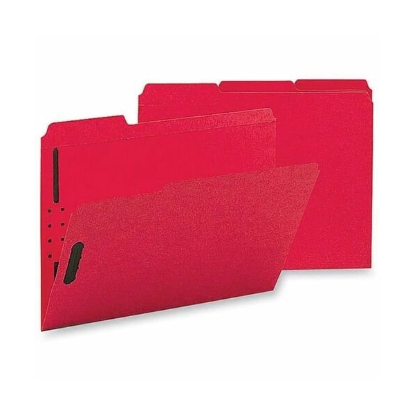 Fastener Folders, w/2-Ply Tab, 1/3 AST Tab, Ltr, Red, 50PK