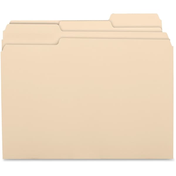 File folders feature 1/3 cut tabs in assorted positions. Tabs are 1/2in high undercut for label visibility. Top corners are rounded. File folders are scored for 3/4in expansion and made of 11 point stock.