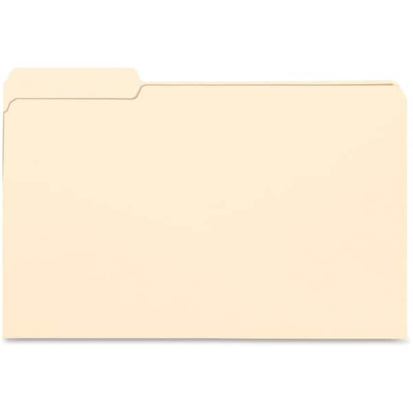 File folders feature 1/3-cut tabs in position No. 1. Tabs are 1/2" high undercut for label visibility. Top corners are rounded. Legal-size file folders are scored for 3/4" expansion and made of 11 point stock.