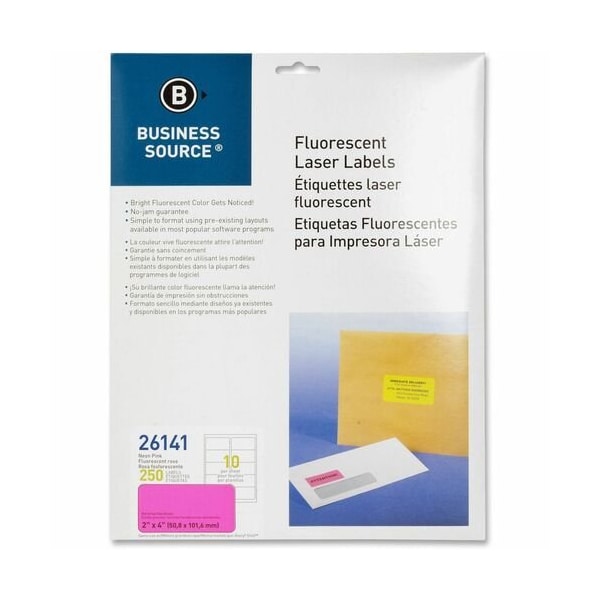 Laser Labels, Fluorescent, 2inx4in, Neon Pink, 250PK