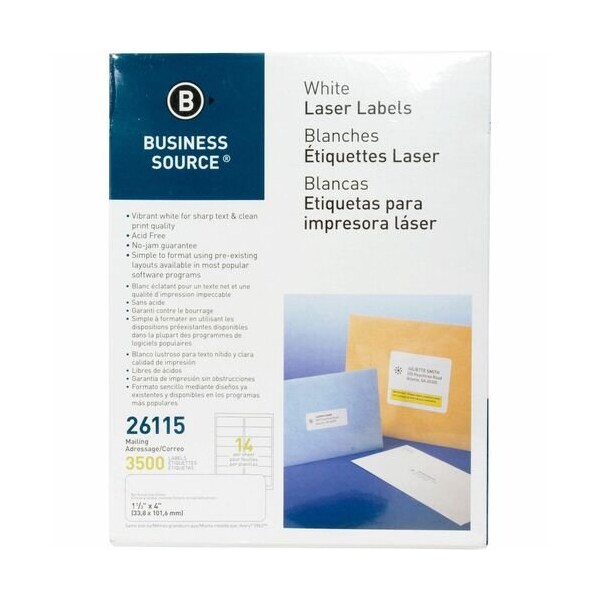 Business Source Mailing Labels, Laser/Inkjet, 1-1/3''x4'', 3500/PK, White, LABEL,IJ/LSR,1.3X4,WE,3500