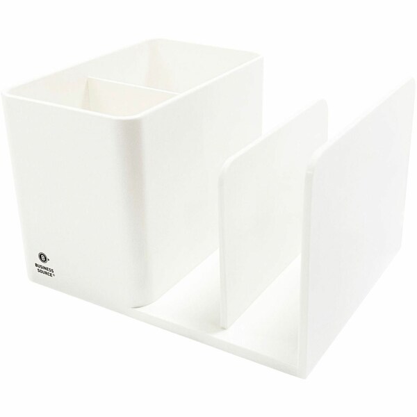 Multifunctional Pen Cup Organizer features two compartments and two leaflet slots for the perfect organization solution. Store pens, pencils, scissors and more in the compartments for quick access. Open-end slots keep letters, notepads, sticky notes and other office essentials organized. Desktop organizer is made of ABS plastic for optimal durability and long-lasting use.