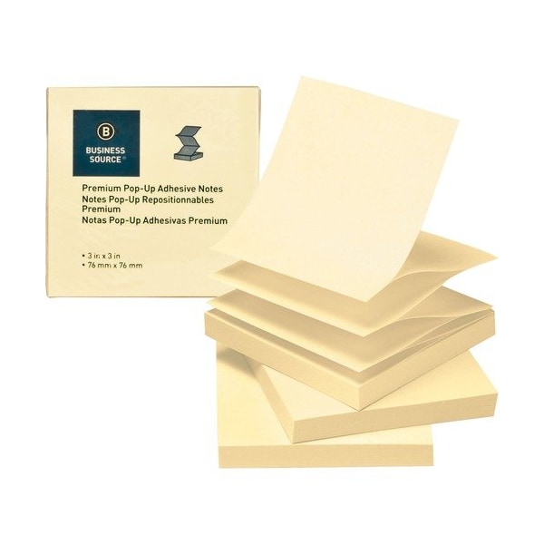 Business Source Pop-up Adhesive Note Pads,3''x3'',100 Sh, 24/PK,Yellow, NOTES,POPUP,3X3,24PK,CANARY