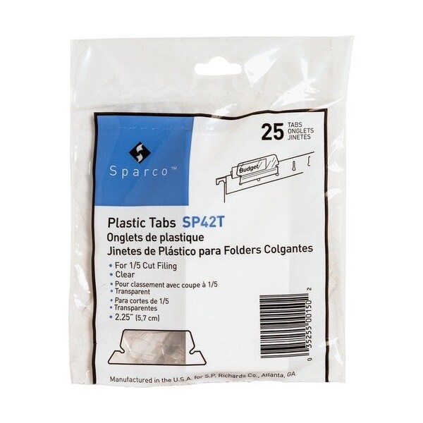 Use plastic clear tabs with Business Source or most other hanging file folders. Tabs are designed to easily slide into premade slots on the inside of hanging file folders. Tabs come with blank inserts for easy customization.
