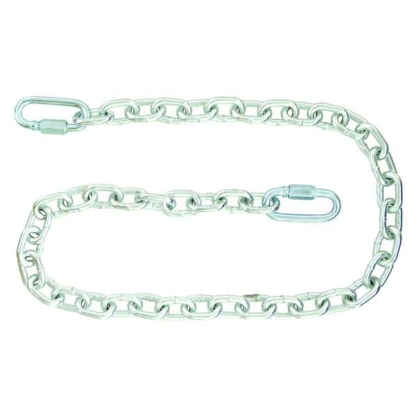 Safety Chain, Attachment Style Quick Link, Duty Capacity Heavy Duty, Chain Style Safety Chain, Hook Width 5/8 in, Link Diameter 1 7/8 in, Chain Length 4 ft, Chain Color Silver, Color Silver, Hook Color Silver, Material Carbon Steel, Finish Zinc Plated, Working Load Break Strength 3,000 lb, Assembly Break Strength 3,000 lb, Number of Legs 0, Features Easy-to-Use Quick Links for A Secure Safety Chain Connection, Includes (2) Quick Link Connectors, Resistance Properties Corrosion-Resistant